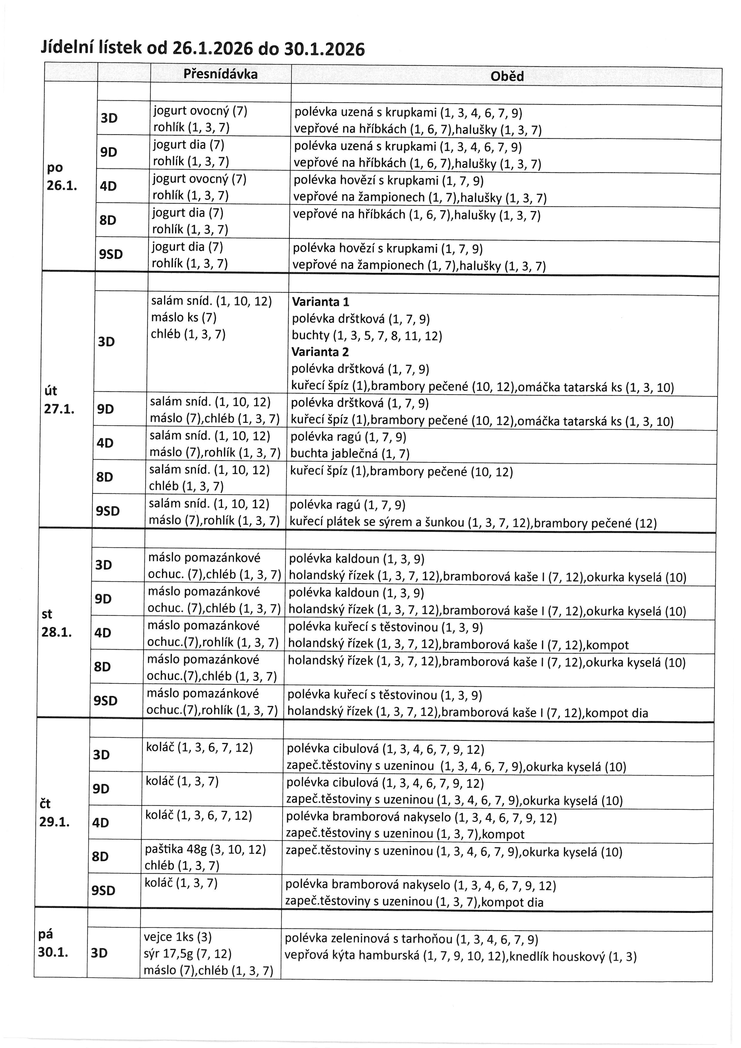 Jídelníček 26.1. - 30.1. 2026