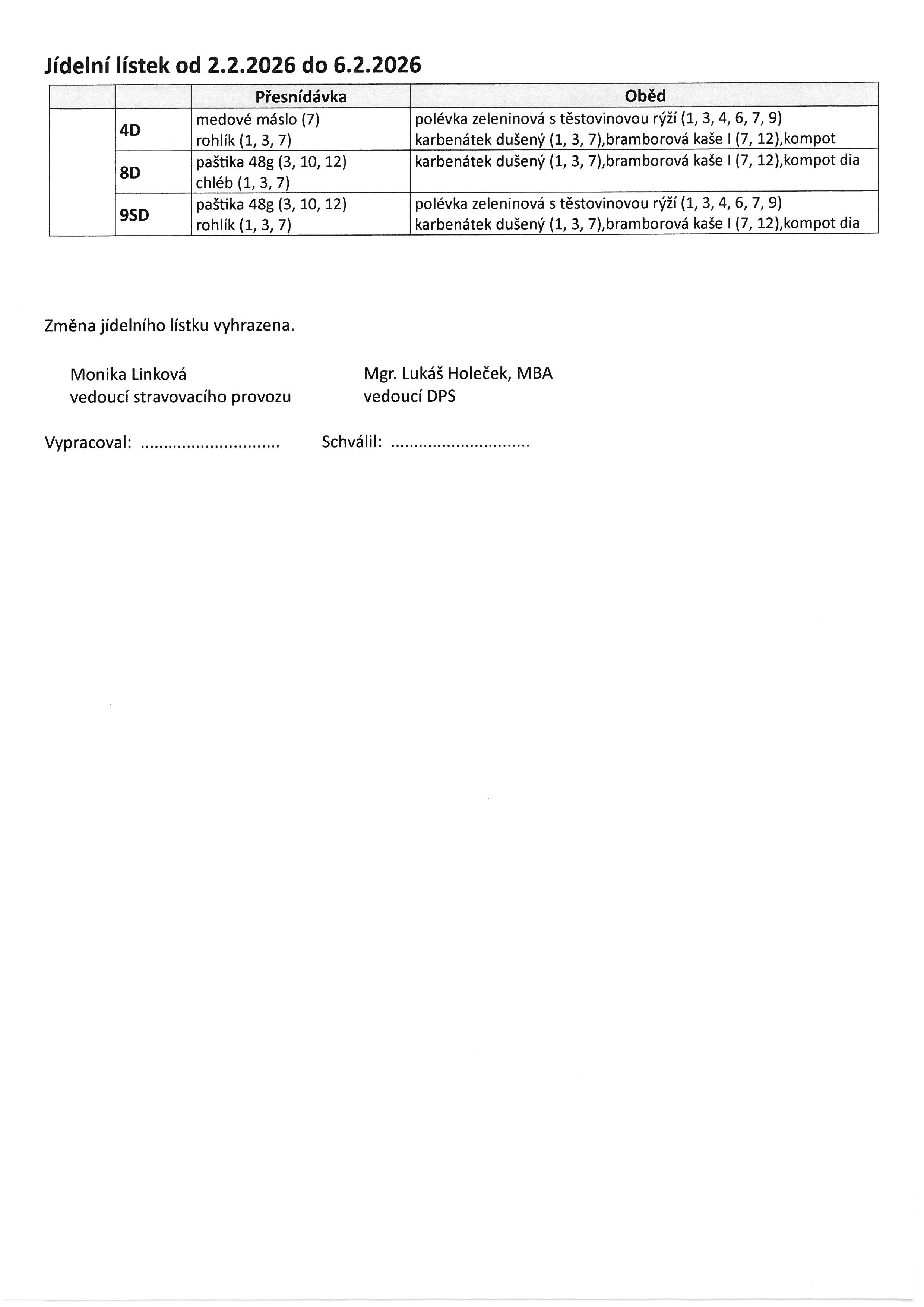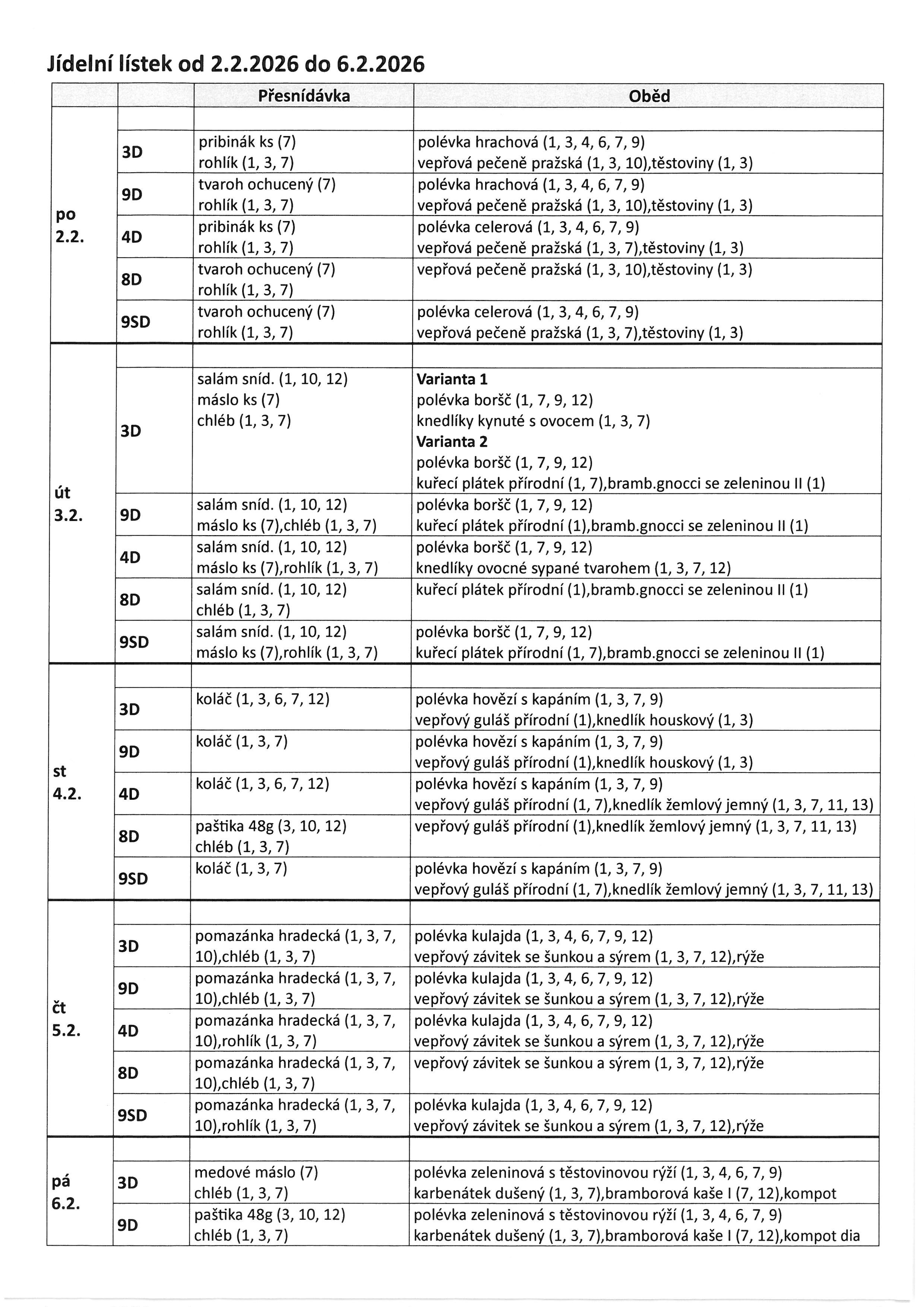 Jídelníček 2.2. - 6.2. 2026